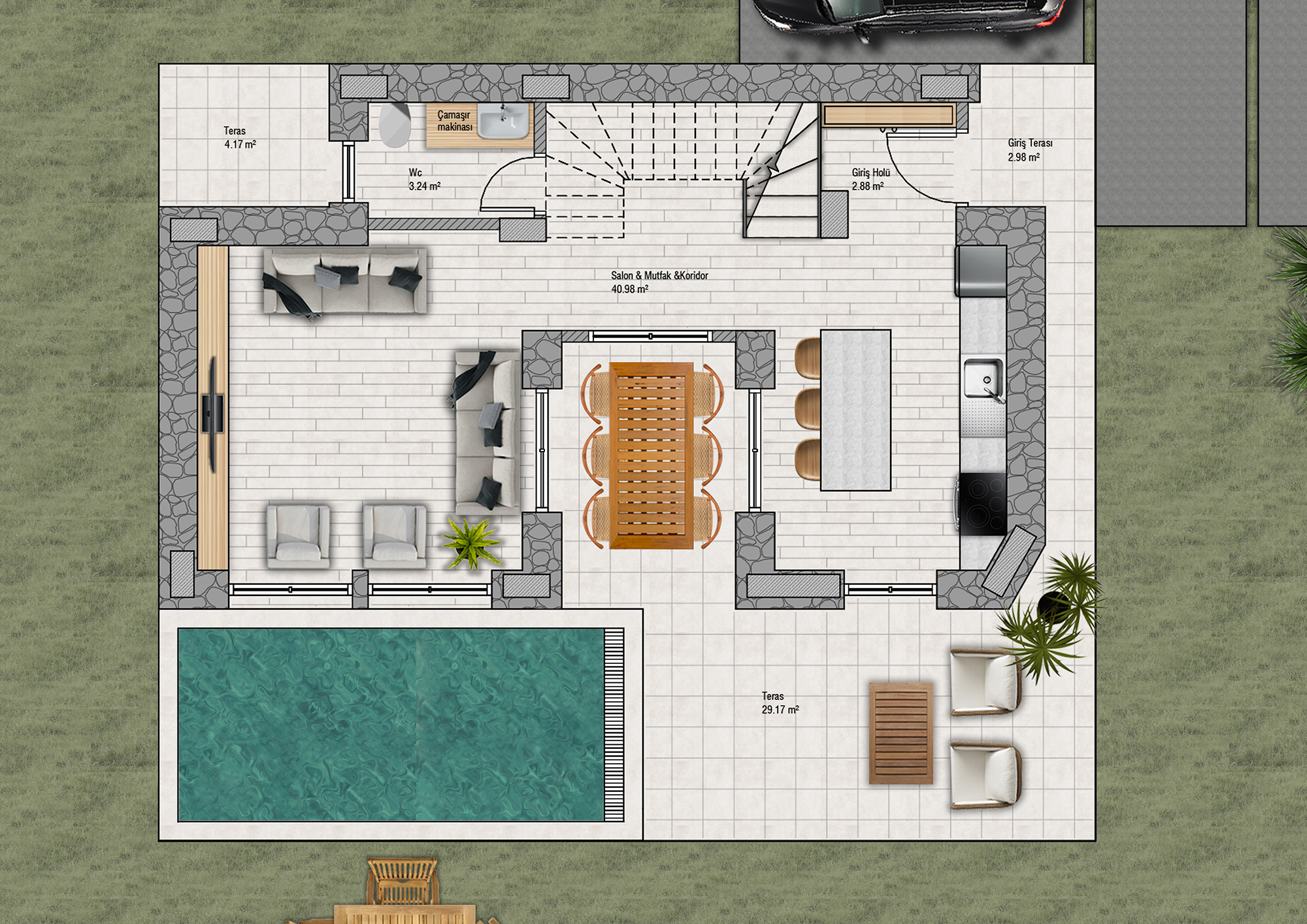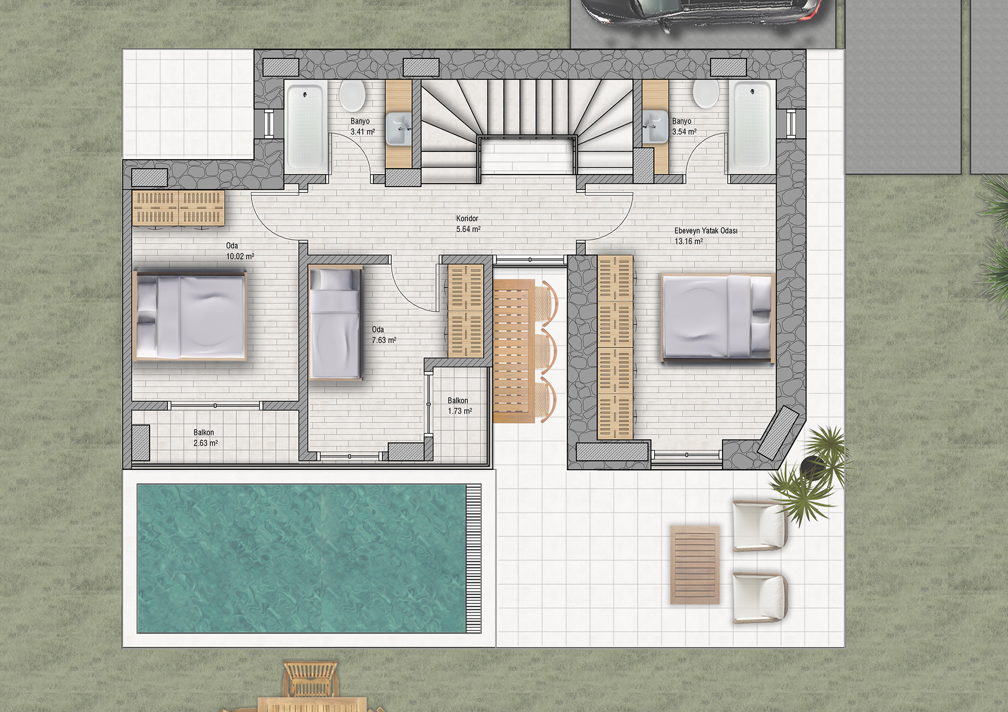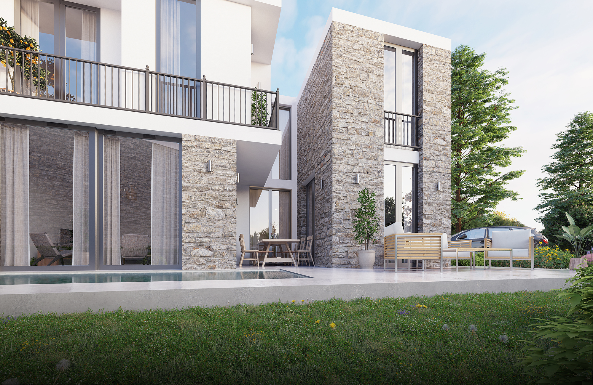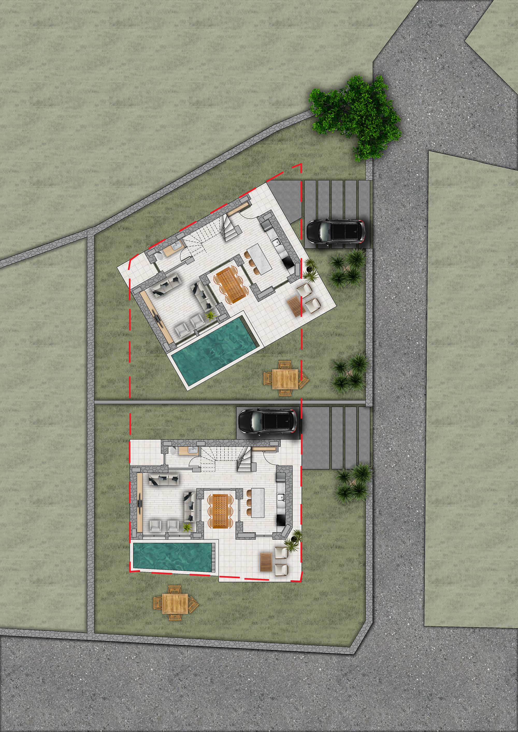 Eski Datça’da 700 m² arsa üzerine; iki müstakil konuttan oluşan projedir.