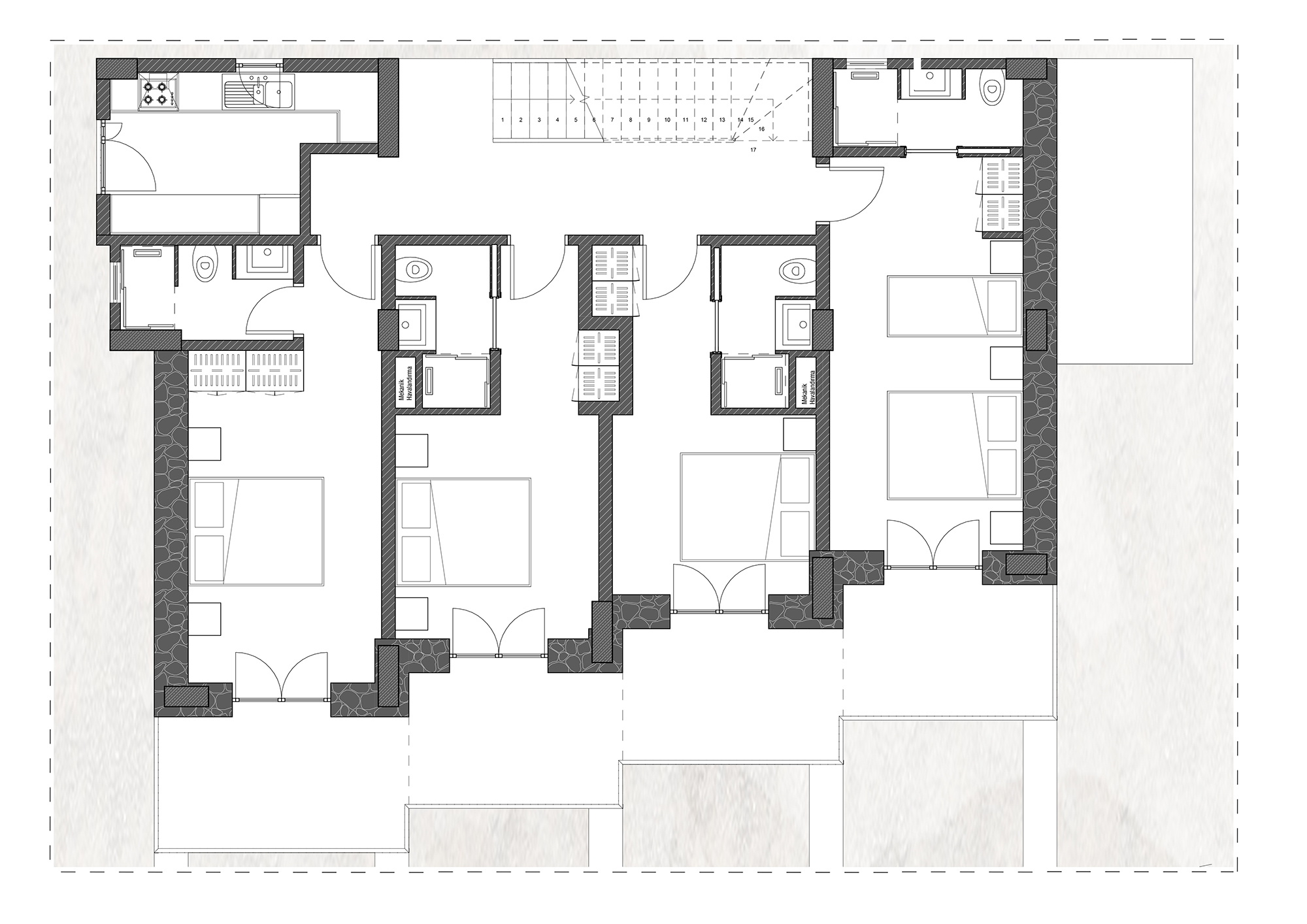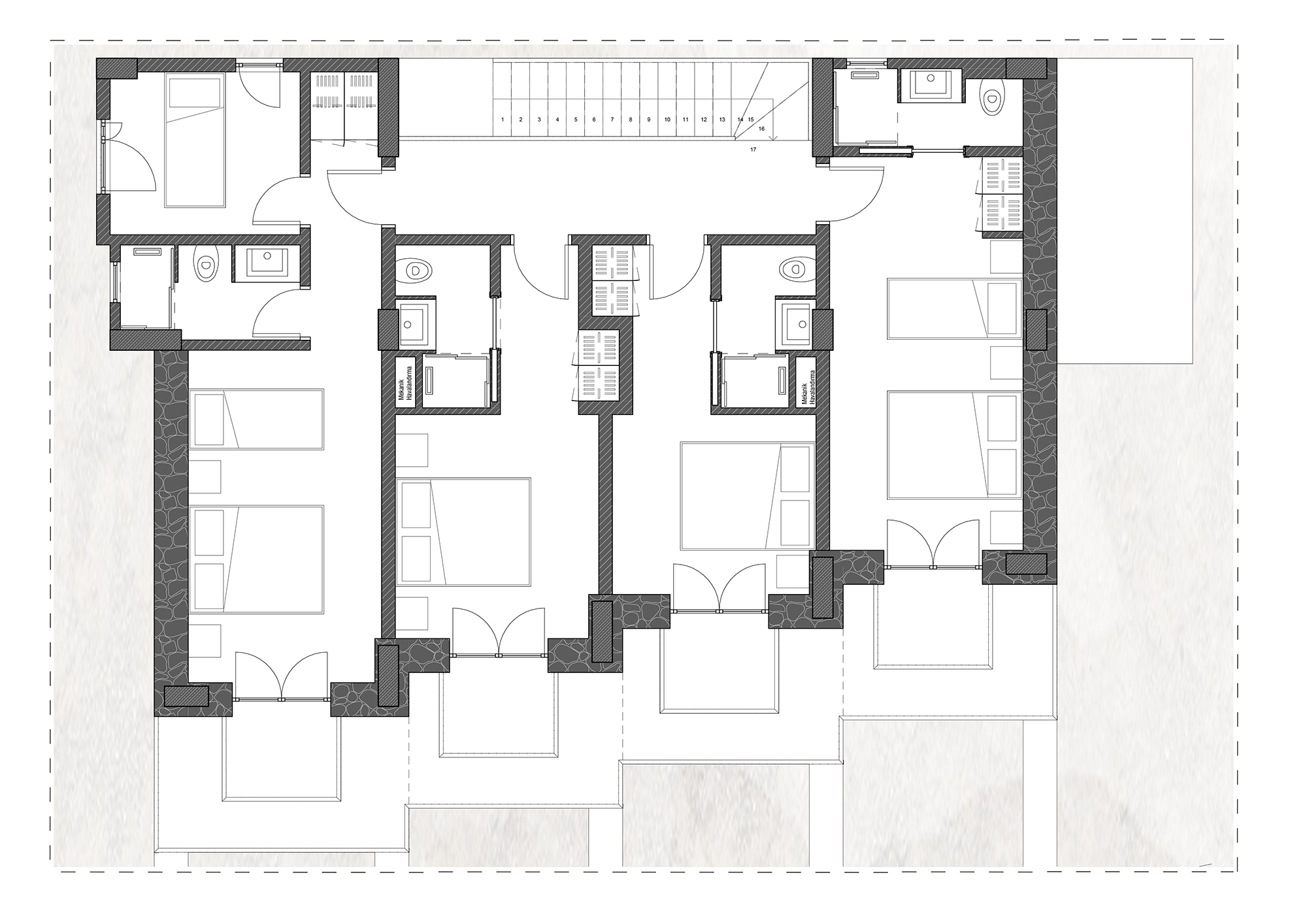 Datça merkez de sekiz odalı bir butik otel projesidir.
